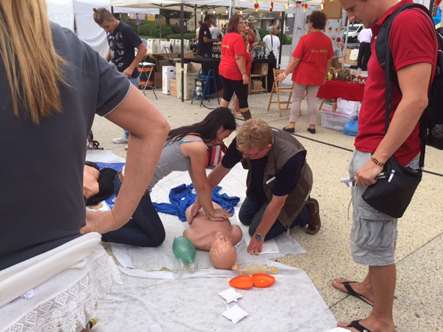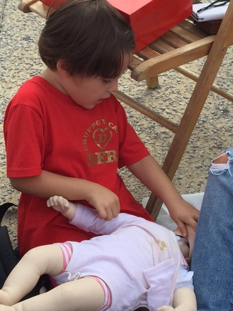 Contemporaneamente con i loro volontari, abbiamo illustrato ai passanti le manovre di rianimazione cardiopolmonare e l’impiego del DAE.