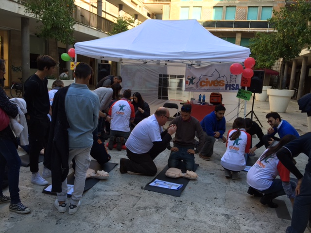 In Largo Ciro Menotti gli infermieri del gruppo CIVES hanno illustrato alla cittadinanza le manovre di rianimazione cardiopolmonare, suscitando grande interesse, come sempre.