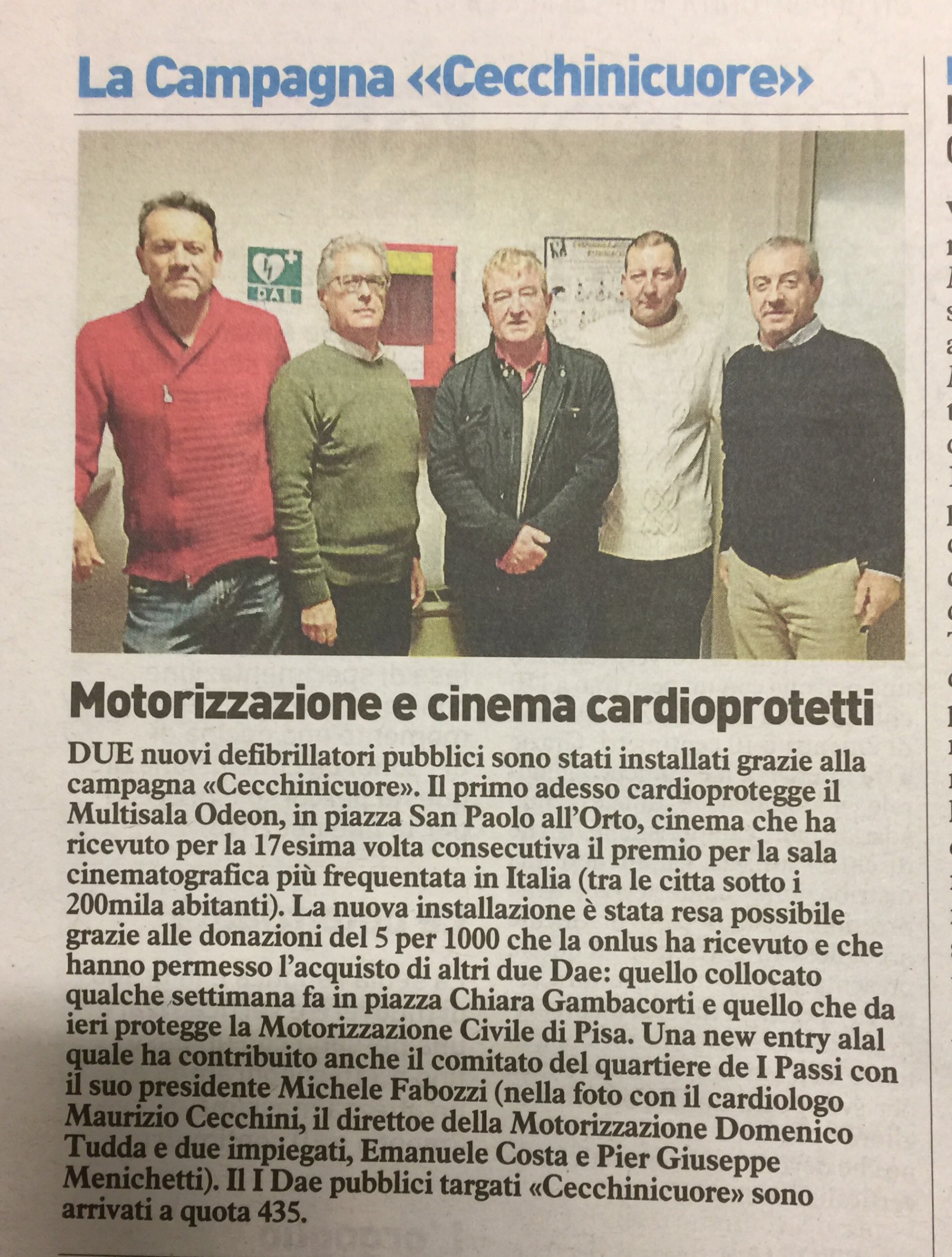 E’ arrivata anche la terza postazione DAE donata dalla nostra ONLUS grazie al 5 per mille dei cittadini pisani.