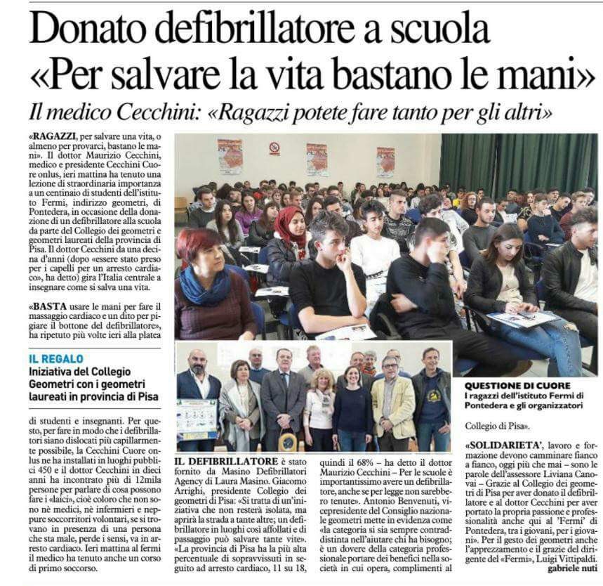 Questa volta e’ stato cardioprotetto l’ Istituto per Geometri di Pontedera “E. Fermi” e subito e’ stato eseguito il nostro consueto Corso BLSD gratuito a piu’ di 100 fra allievi ed insegnanti dell’ Istituto.