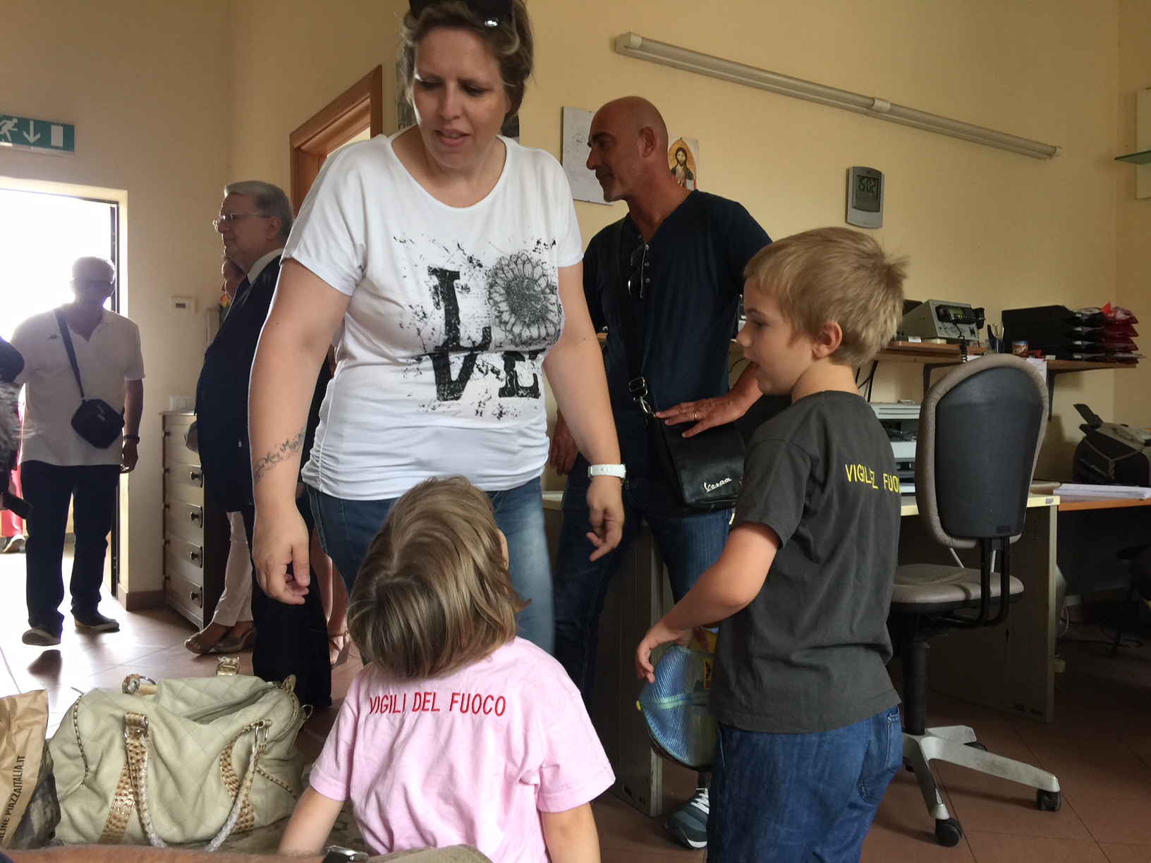 Un abbraccio da tutti noi a Silvia TOGNONI, mogli di MArcello ed ai due figli , Andrea ed Elena, che qui vedete aspiranti Vigili del Fuoco