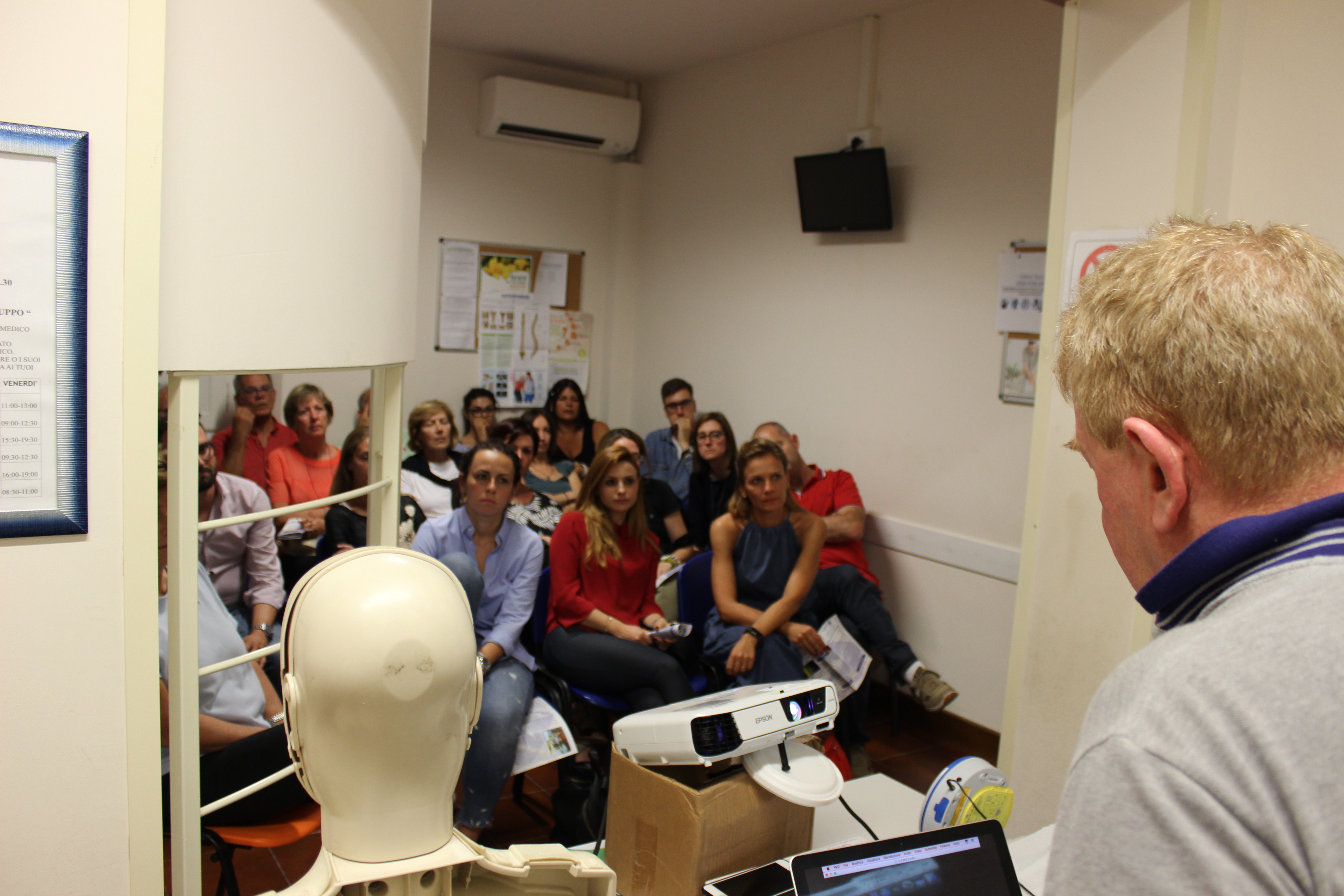 L’iniziativa e’ stata fortemente voluta dal Dott. Francesco ADAMI ; nella stessa serata abbiamo tenuto il nostro consueto corso BLSD gratutito a tutto lo staff della farmacia e ad alcuni Colleghi che hanno il loro studio negli stessi locali.