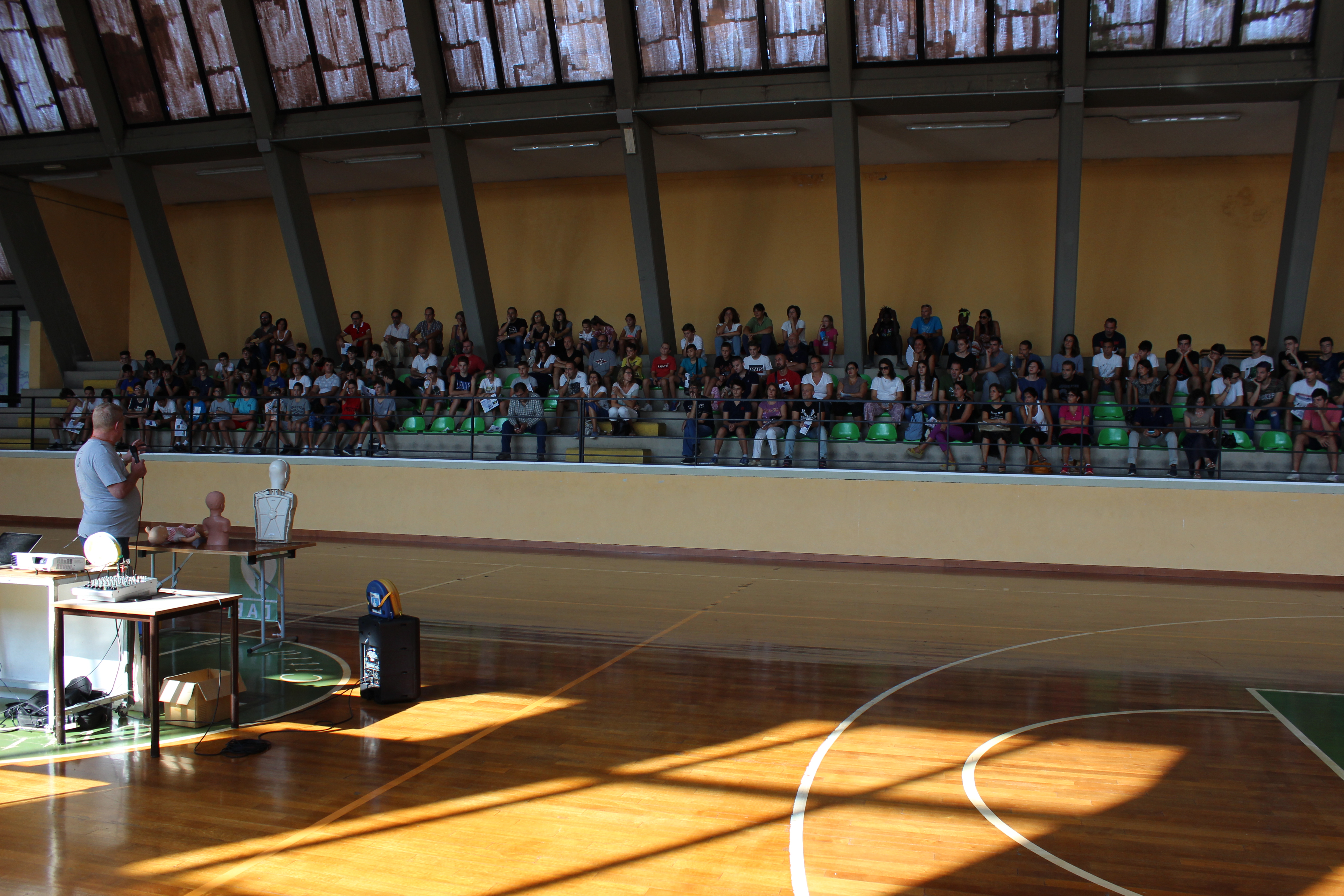 Domenica 23 settembre abbiamo svolto un corso al Palazzetto dello Sport di S. Concordio a Lucca in collaborazione con il Centro Minibasket Lucca nella persona dell’amico Maurizio Barsanti, al quale hanno partecipato oltre 100 persone fra ragazzi e genitori. Come al solito il Dr. Maurizio Cecchini ha illustrato efficacemente (in pisano) i vari motivi per cui si può cadere vittime di un arresto cardiaco, l’importanza del massaggio cardiopolmonare e l’utilizzo di un defibrillatore. E’ stata illustrata anche la manovra di Heimlich (disostruzione delle vie respiratorie) e nella breve pausa, i presenti hanno potuto cimentarsi nella simulazione del massaggio sui manichini messi a disposizione dalla Cecchini Cuore.