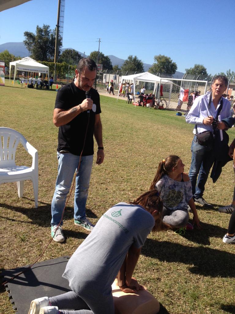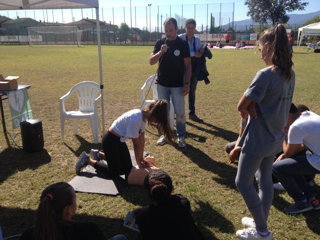 Sabato 29 settembre eravamo presenti con un gazebo informativo alla Festa dello Sport allo stadio di Porcari, invitati dal Consigliere Comunale David Del Prete, dove varie classi delle scuole medie hanno potuto assistere a dei minicorsi per imparare le azioni principali da fare in caso si trovassero di fronte ad una persona in arresto cardiaco: come riconoscere se il “paziente” è in stato di incoscienza, se respira e la “catena della sopravvivenza” cioè le azioni principali da effettuare per cercare di salvare una vita.  Loro, per fortuna, ci hanno messo poco a capire che TUTTI possono adoperarsi per il prossimo facendo un massaggio cardiaco ed usare un DAE in caso di necessità; si perchè, anche se nessuno ve lo dice (anzi, cercano di farvi credere il contrario, perchè la maggior parte dei corsi sono a pagamento), NON ESISTE NESSUN DIVIETO ALL’UTILIZZO DI UN DEFIBRILLATORE IN CASO DI NECESSITA’. NEMMENO PER QUELLI CHE NON HANNO PARTECIPATO A UN CORSO (come non esiste nessun divieto per usare un estintore). Ovviamente chi ha avuto la possibilità di assistere a un corso DAE, sarà più preparato e pronto a reagire in modo corretto (e più che altro non avrà le paure, anche “legali”, che naturalmente possono sopravvenire in situazioni del genere), ciò non toglie che in una situazione di emergenza TUTTI  possono accendere un defibrillatore pubblico e seguendo le istruzioni vocali, procedere all’utilizzo di questo “elettrodomestico salvavita “autorizzato dal Ministero della Salute.