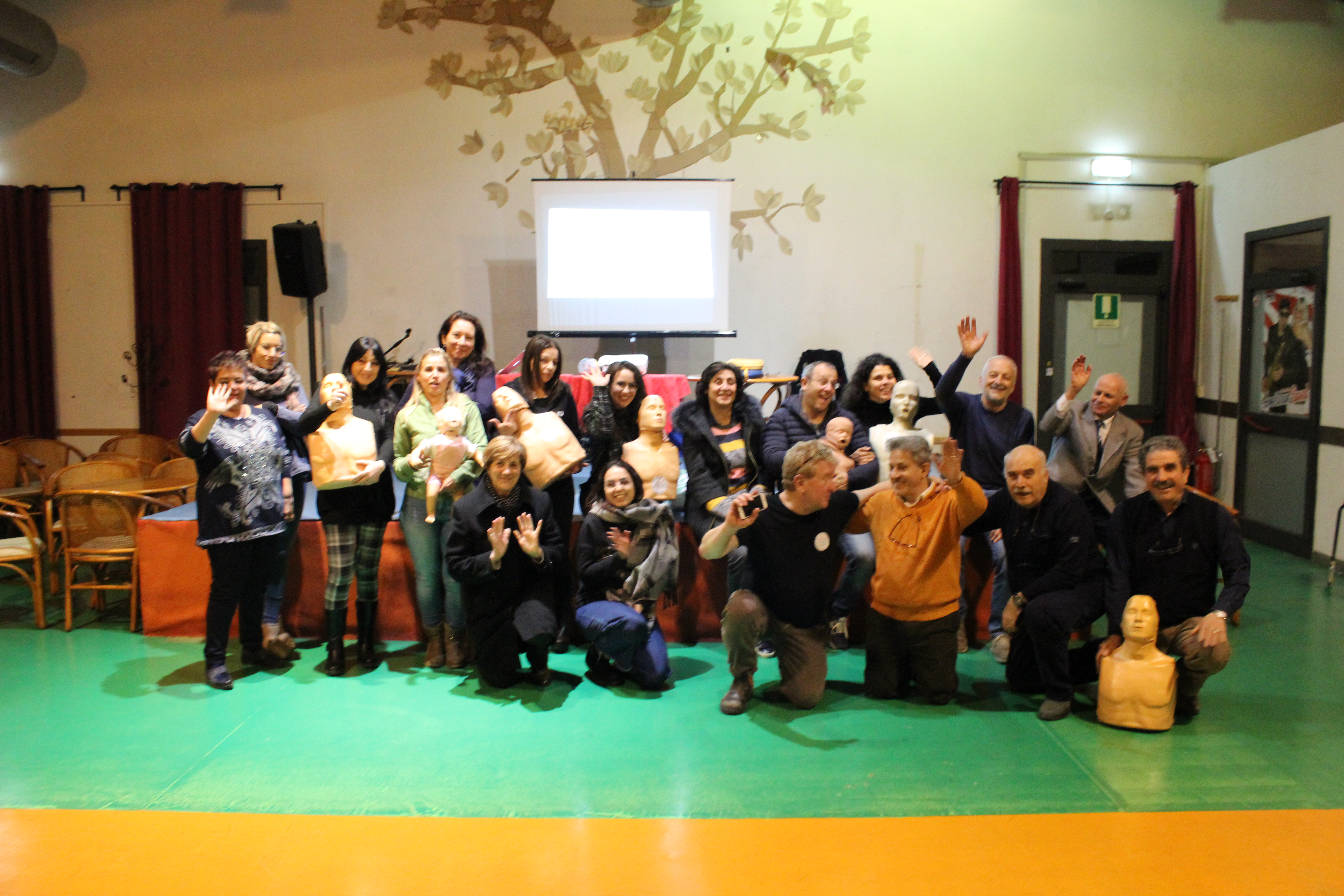 Sono state illustrate le manovre di rianimazione cardiopolmonare, l’utilizzo del DAE e quelle per la disostruzione delle vie respiratorie nei lattanti, bambini ed adulti.