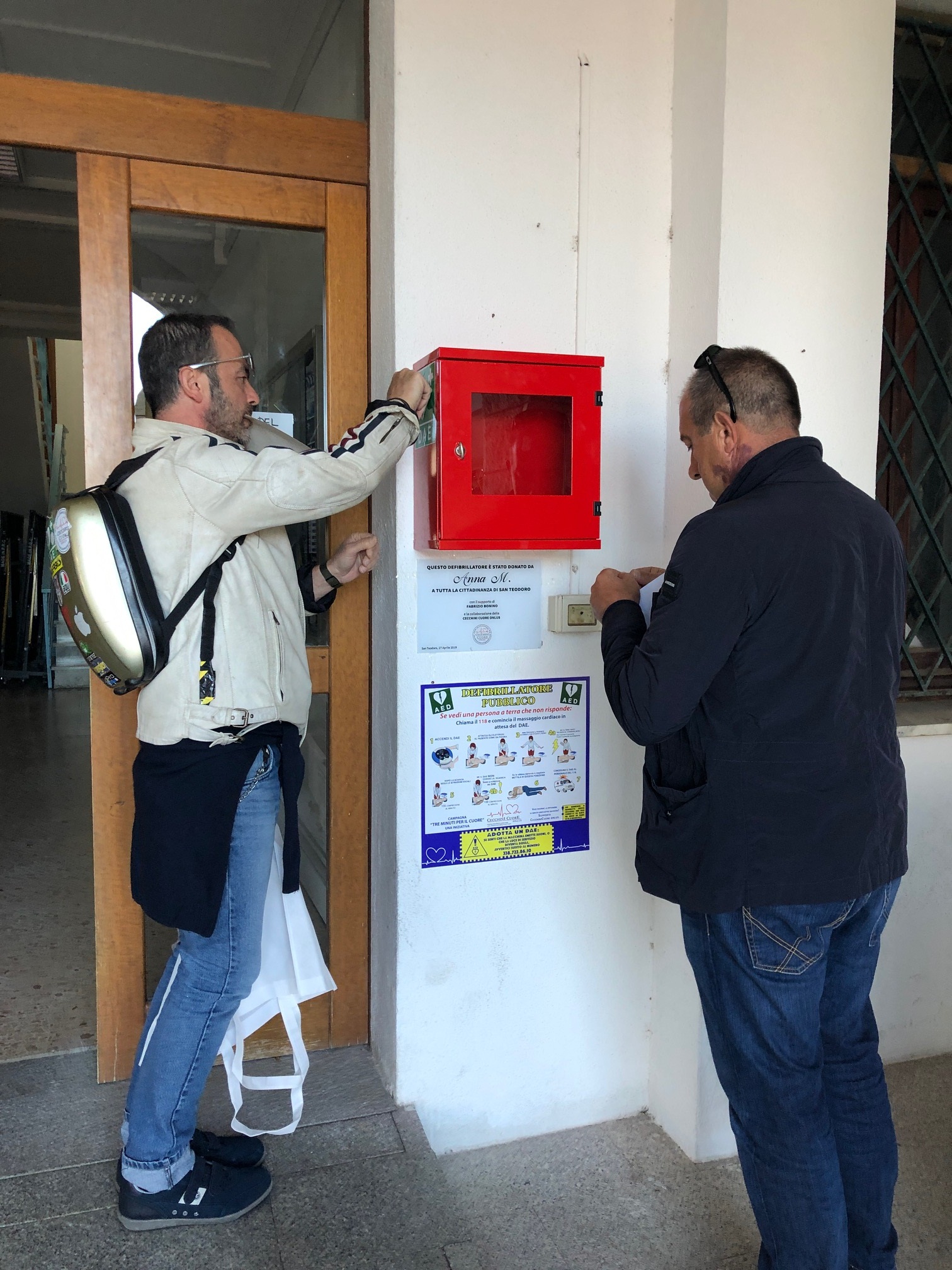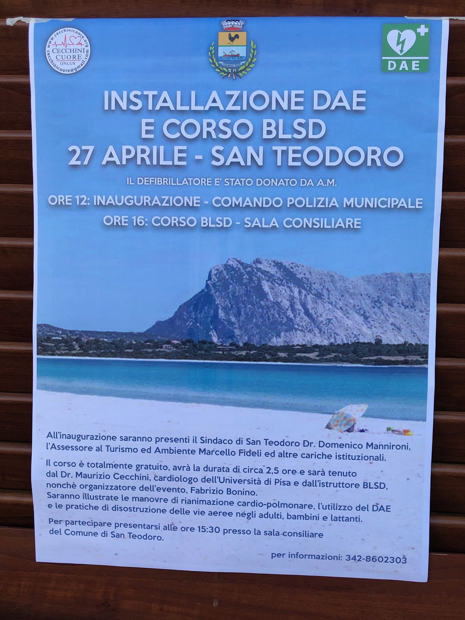 Si è svoltta a San Teodoro, stupenda località in Gallura, l’inaugurazione del DAE n. 501 donato da Anna M. con la collaborazione di Fabrizio BONINO e la Cecchini Cuore ONLUS.