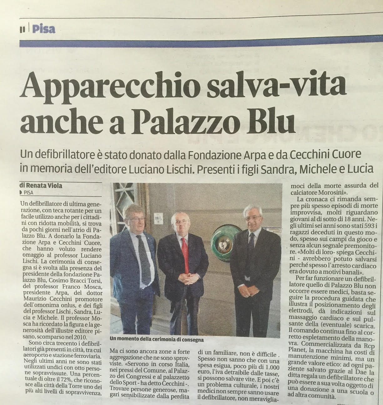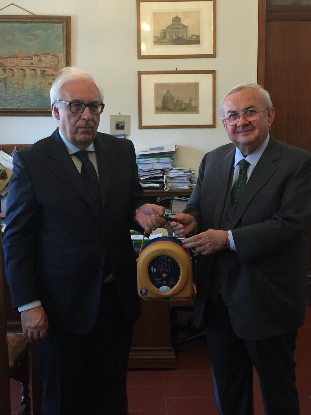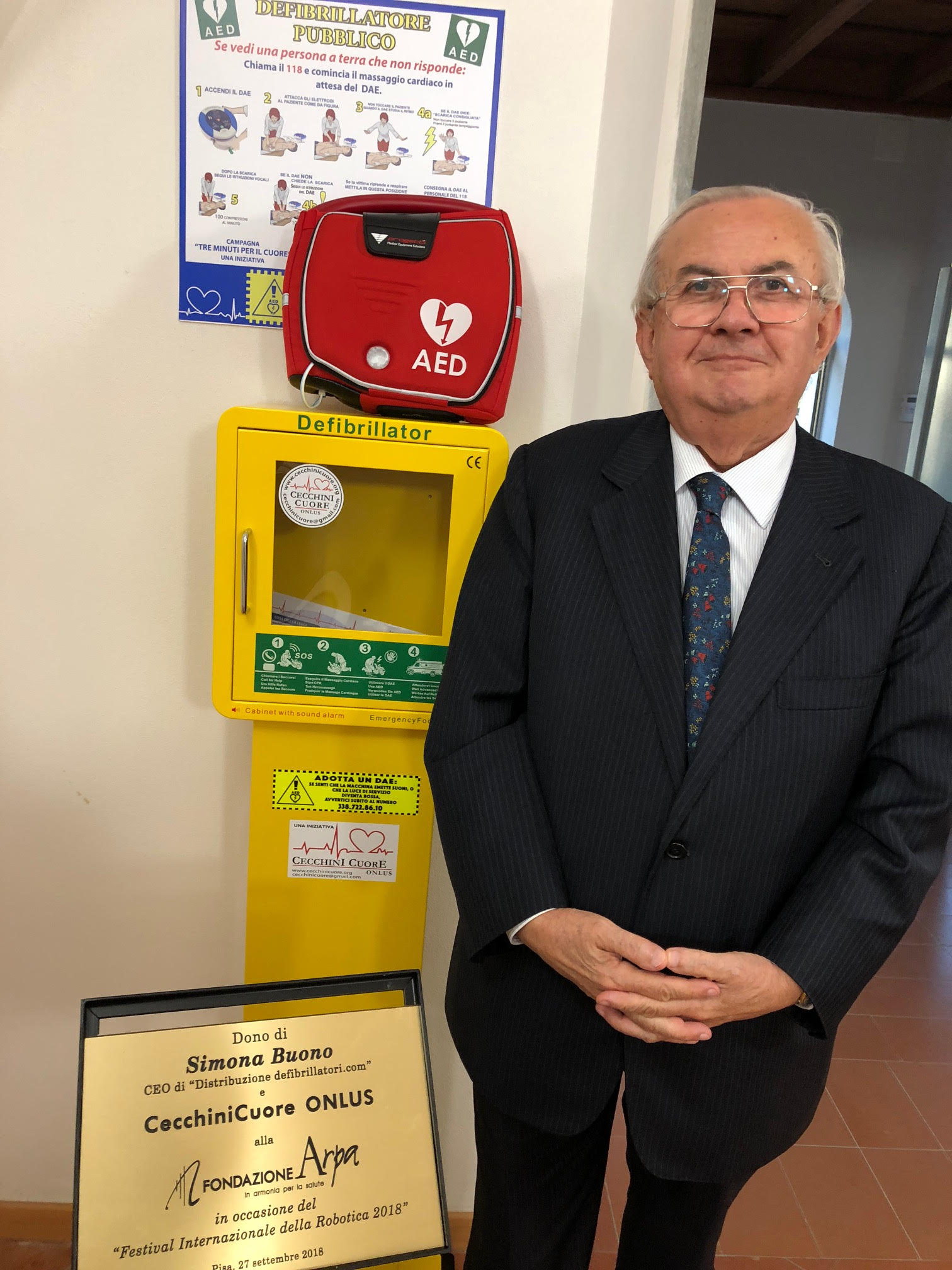 In qualita’ di Presidente della ARPA, infatti, ha donato defibrillatori alla citta di Pisa nelle postazioni piu’ prestigiose: dall’ Aeroporto (primo aeroporto italiano cardioprotetto), al Palazzo Blu, al Tribunale, agli Arsenali Medicei per il Festival della Robotica, al centro “Le Vele”.