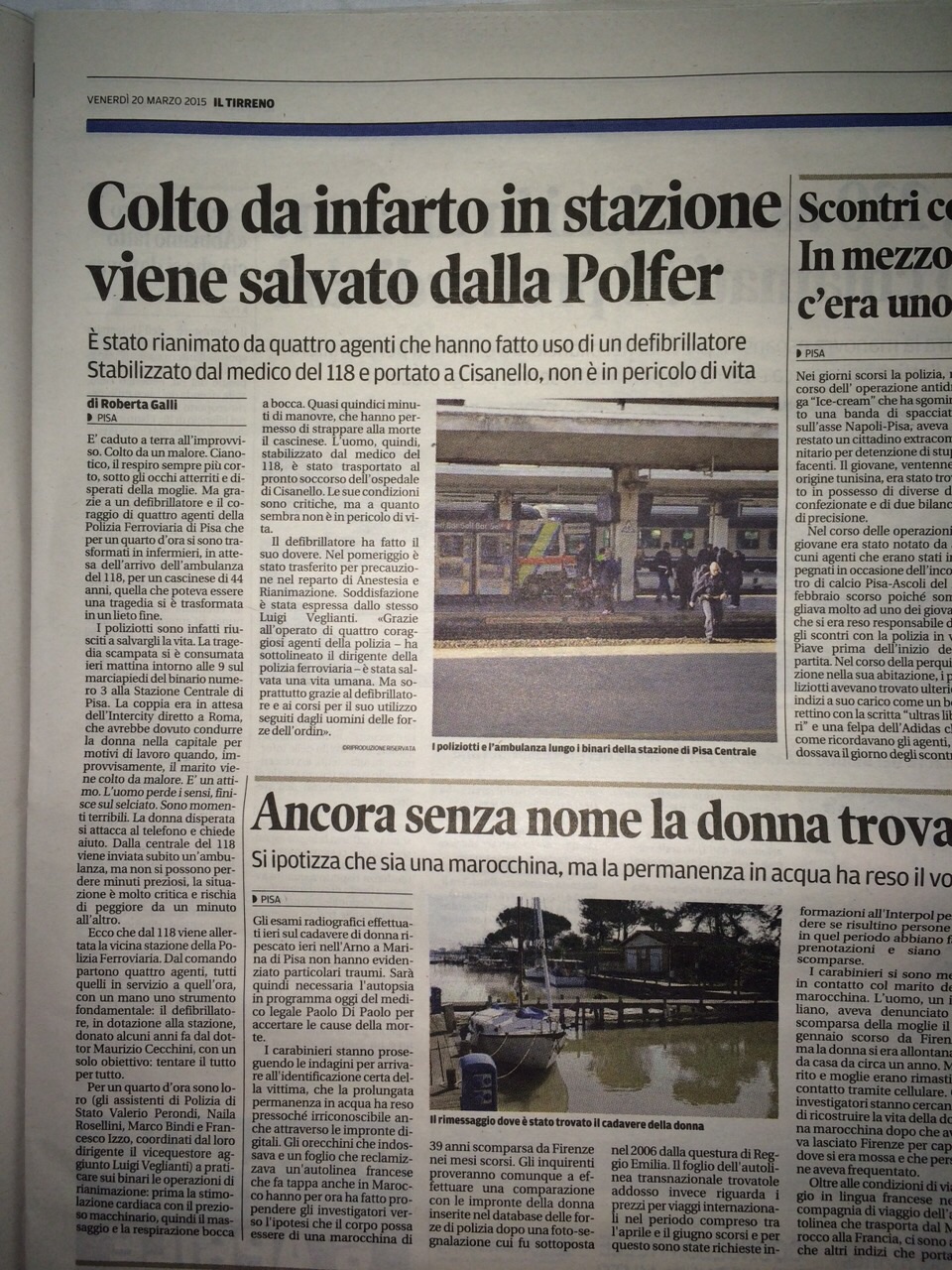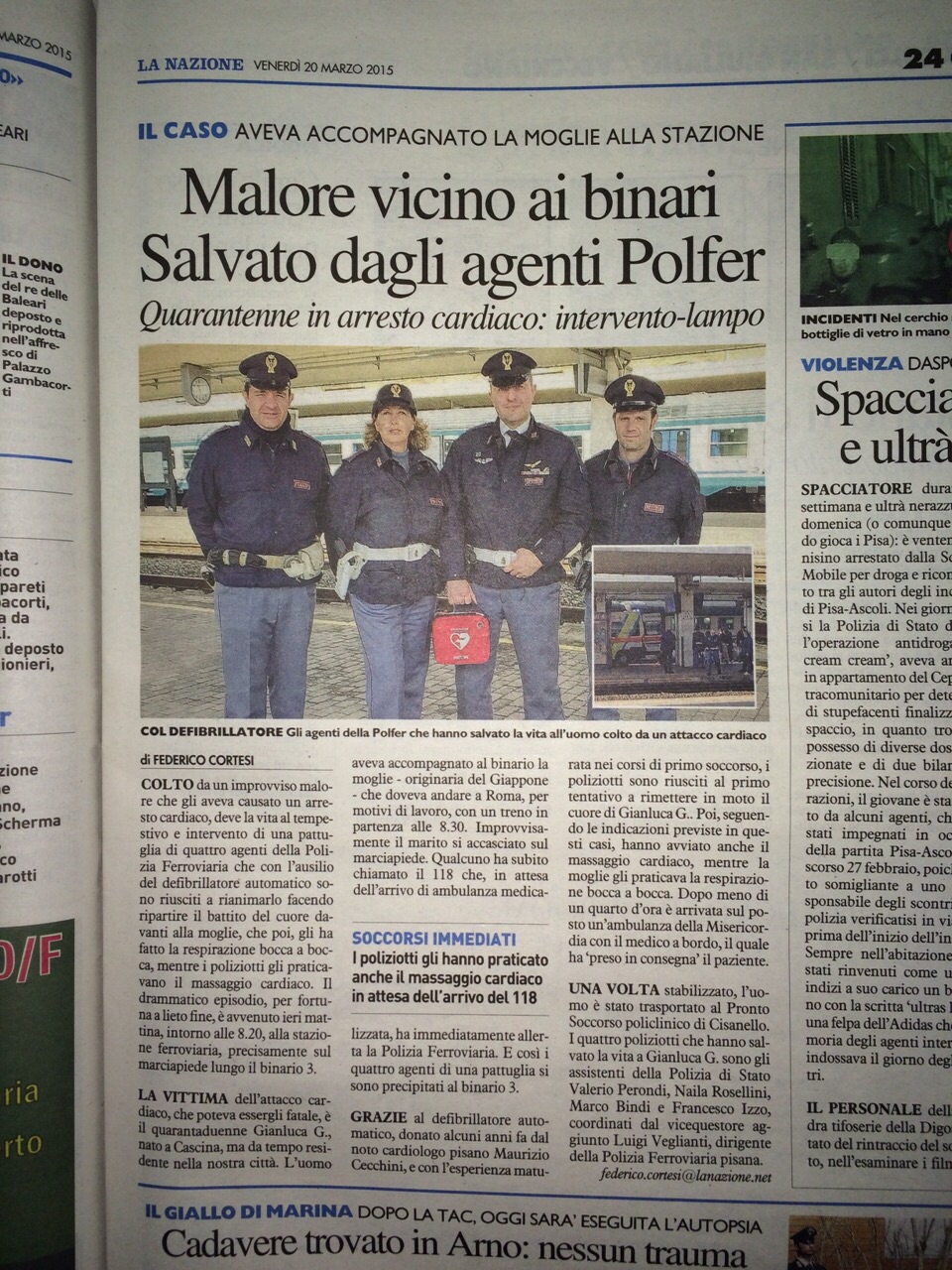 Ma a differenza da quanto troppo spesso si legge, questa volta la vicenda ha avuto un lieto fine e l’uomo si è salvato. Eh sì, perché la stazione di Pisa, da un paio di anni, è dotata di defibrillatore e il personale della Polizia Ferroviaria, che in questo caso