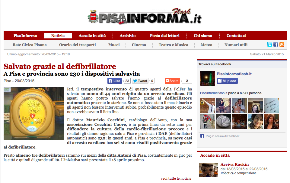 Ad oggi, quindi, i nostri DAE sono stati utilizzati 9 volte ed in 6 casi la persona colpita da arresto cardiaco si è salvata. A voler giocare con le statistiche possiamo dire, che, nel caso della nostra campagna il successo è stato, finora del 66,666666 %, ma personalmente preferisco pensare in termini di persone, che di numeri. In termini di vite salvate, con un nome, un cognome