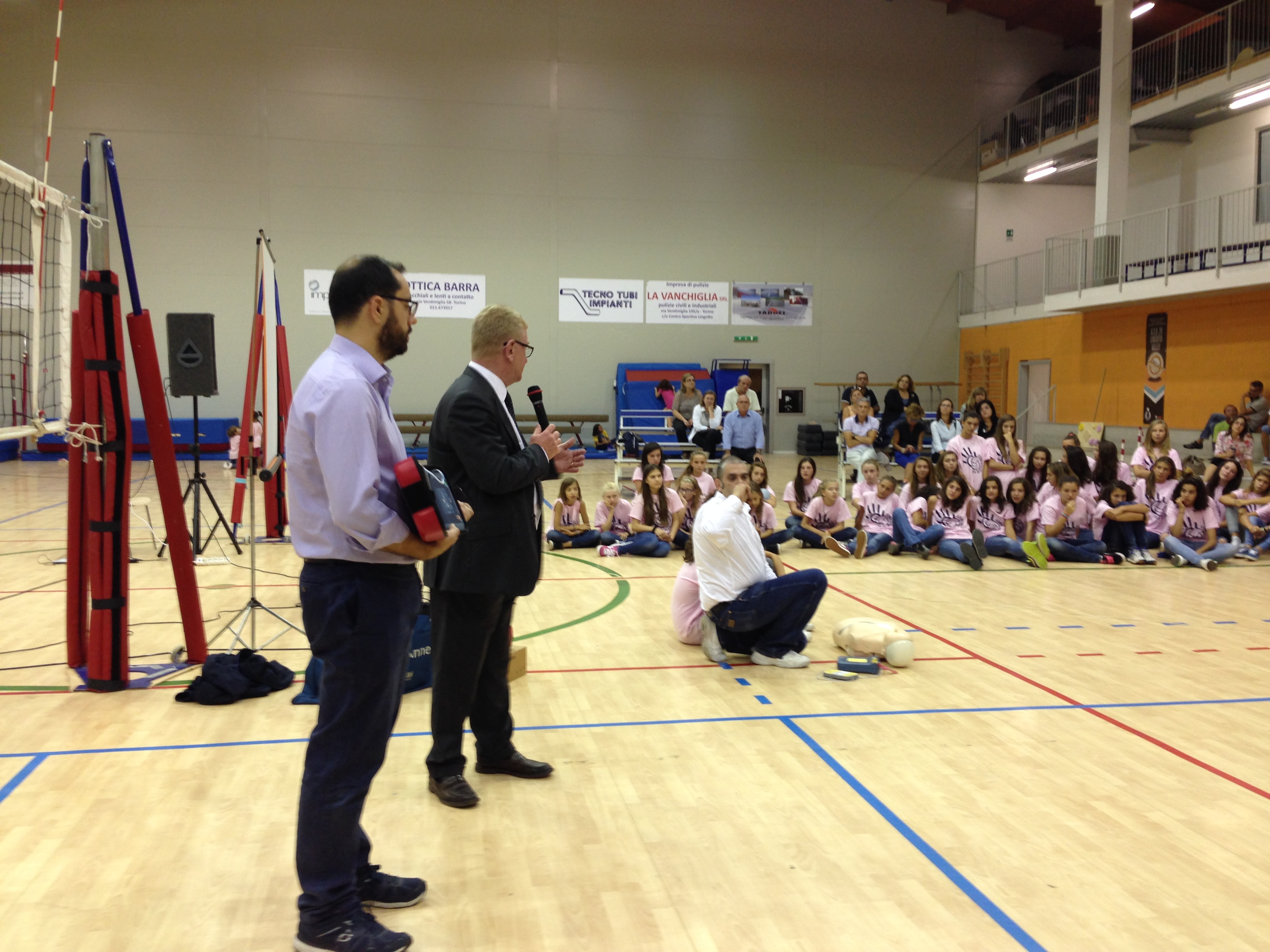 Federica Lisi BOVOLENTA e Marcello SEGRE insegnao l’uso del DAE alla squadra di Volley “Il Lingotto” di Torino