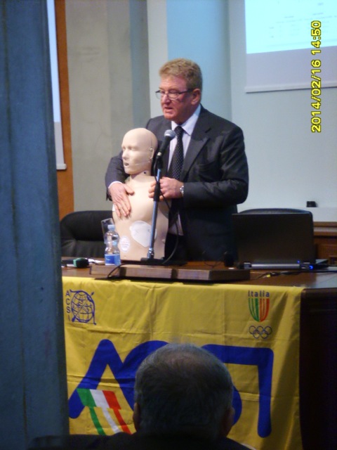 Alla conferenza stampa di venerdì sono intervenuti come relatori: Andrea Enea, Marco Bergonzi e due testimonial d’eccezione Andrea Arsaci salvato grazie al defibrillatore e Federica Lisi Bovolenta, la moglie di Vigor Bovolenta, scomparso in campo il 24 marzo 2012. La signora, mamma di 5 figli, ha portato una toccante testimonianza che ha commosso tutti i presenti. La sig.ra Bovolenta ha l’immensa forza di portare avanti un messaggio positivo: “l’amore è per sempre. Non ci lasceremo mai, nonostante la morte. Ricordarsi che un piccolo gesto pu essere fondamentale e importante per un’altra vita. Crederci sempre” Un’altra testimonianza ha commosso i presenti ed è stata quella del maestro Peppe Vessicchio, uno dei fondatori di Trenta Ore per la Vita. La dott.ssa Daniela Aschieri ha parlato del Progetto Vita Sanremo che sta seguendo come responsabile del comitato scientifico.