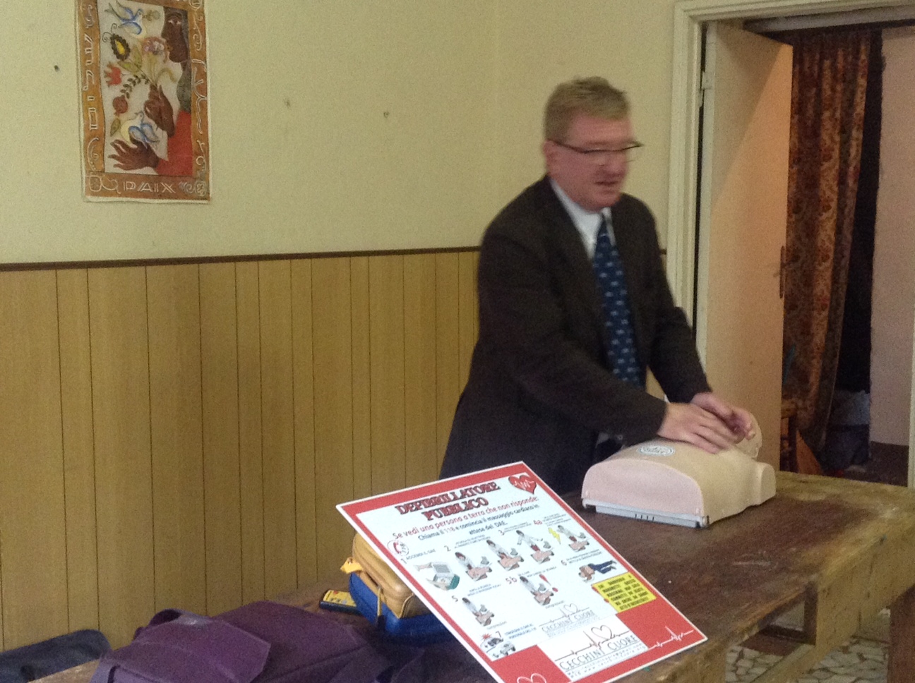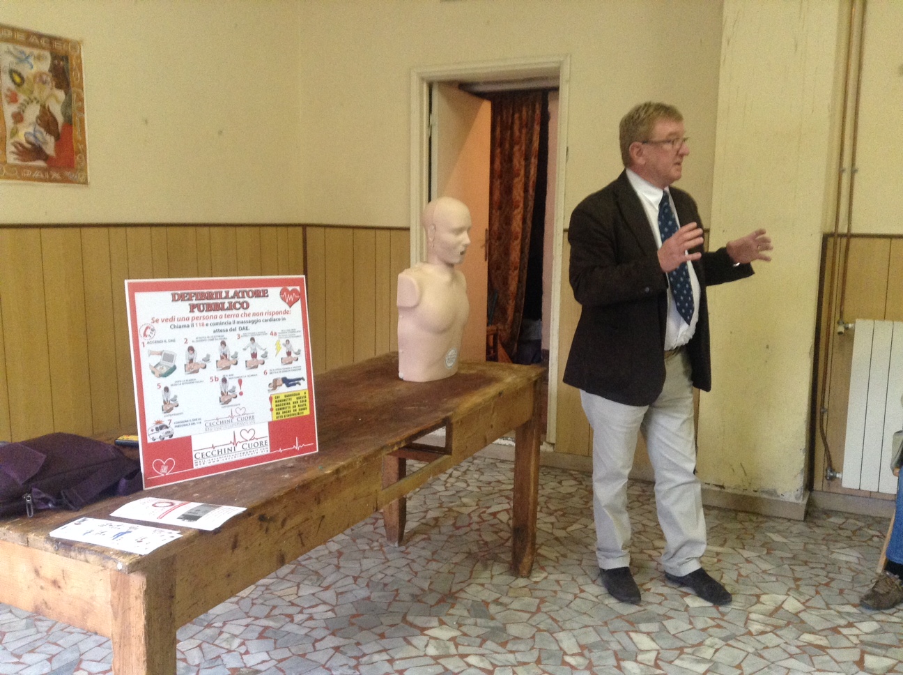 E così, oggi, nella tarda mattinata, il dott. Cecchini ha svolto un mini corso sull’uso del defibrillatore per chi ha voluto intervenire.