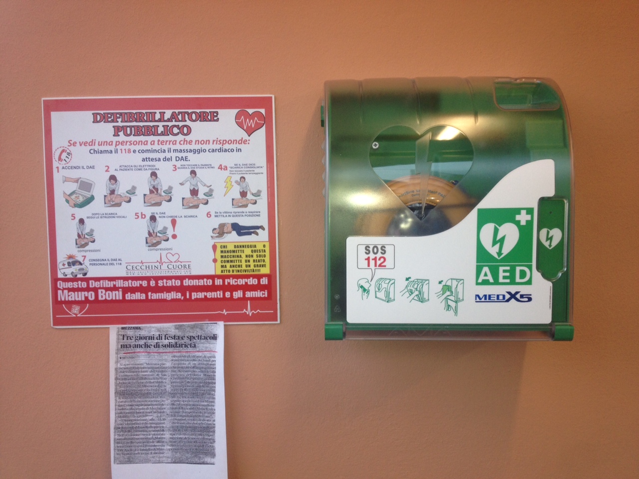 Dispiace mettere in evidenza che la diffusione del defibrillatore è ancora legata più all’intervento di azioni di volontariato dei singoli cittadini o associazioni che all’intervento delle istituzioni,benché l’utilizzo del DAE sia legge dello Stato già da tempo.