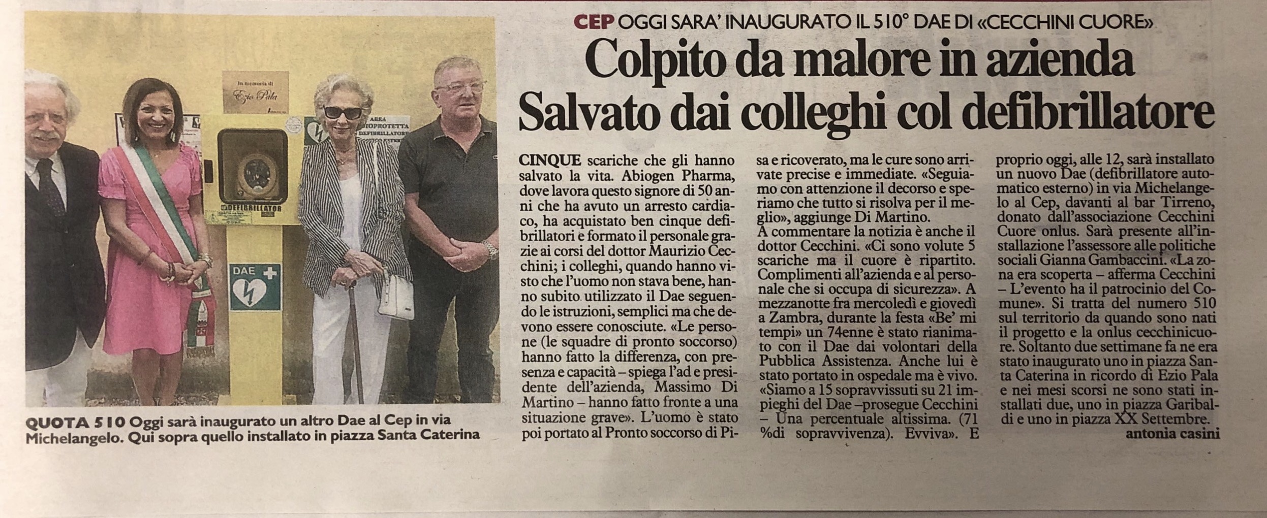 Notizie come quelle dei due giorni passati , nei quali due cittadini sono stati rianimati da un arresto cardiaco dalla presenza di un DAE e’ una spinta formidabile a continuare, a migliorare.