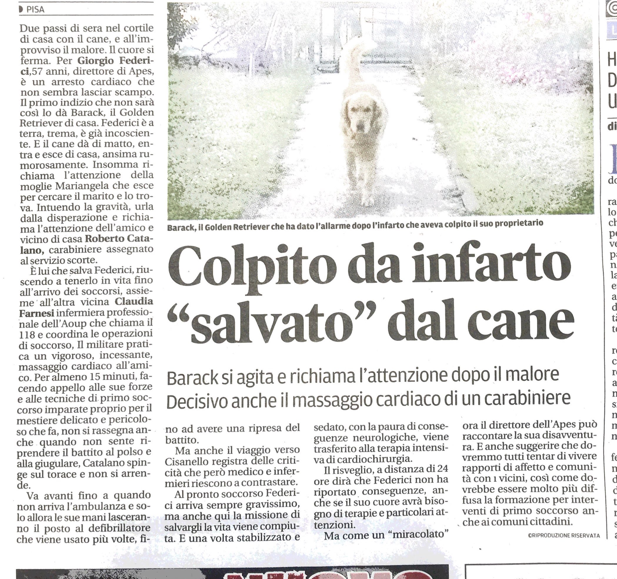 Giovedì 25 Maggio ore 17,00 a Pisa in via dell Aeroporto presso Banca popolare di Lajatico verrà installato un defibrillatore DAE donato alla cittadinanza dalla Magistratura San Marco e da Toscana Aeroporti. Durante la manifestazione sarà spiegato il funzionamento del suddetto DAE e ci sarà una dimostrazione di tecniche di rianimazione cardiopolmonare che saranno illustrate e praticate dalla onlus Cecchinicuore.org. Al termine sarà offerto un aperitivo per i presenti. Si ringrazia la Banca Popolare di Lajatico per la disponibilità dell installazione all’esterno di essa .